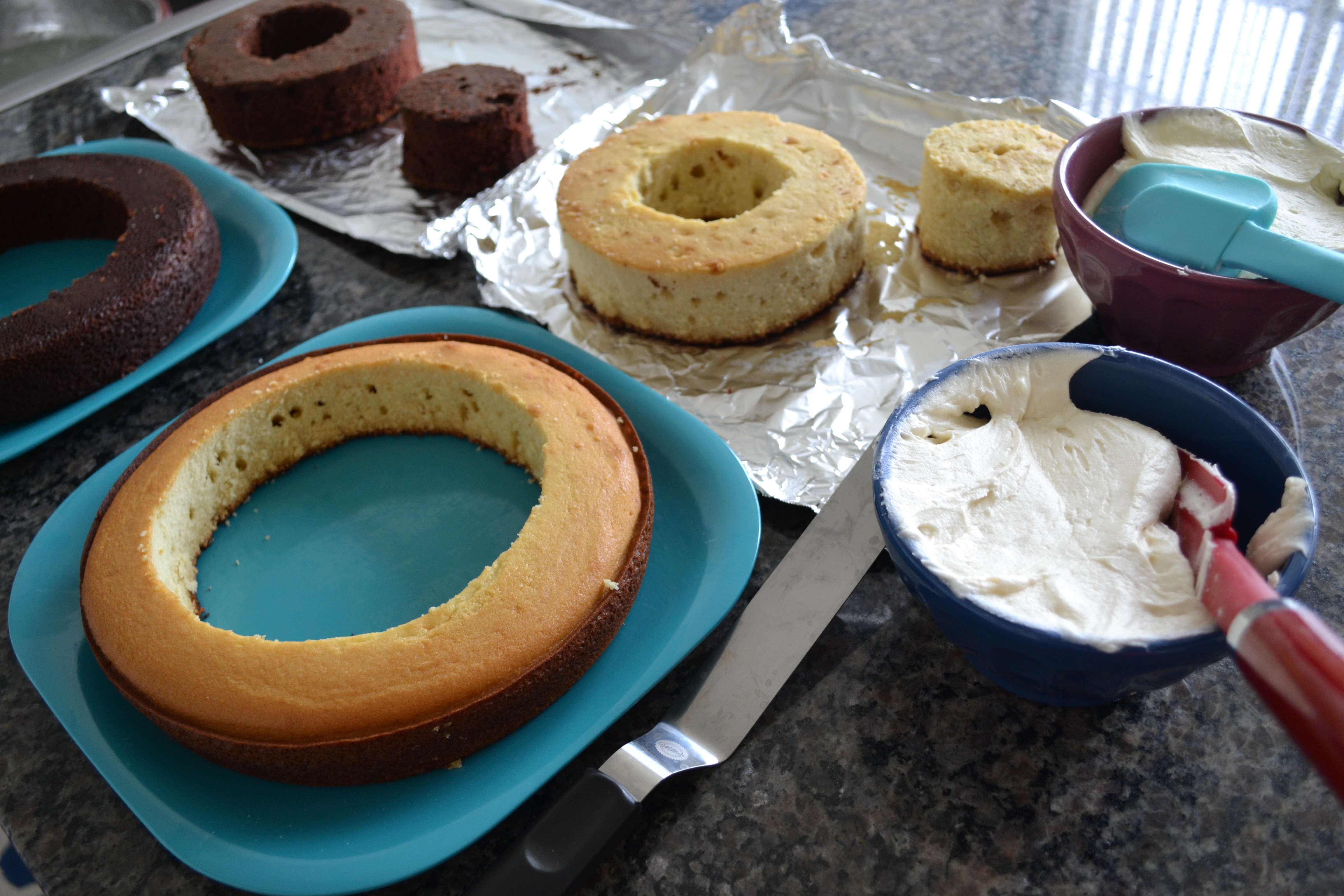 7. Bake the cakes at 325F for about 17-19 minutes or until a toothpick comes out clean.