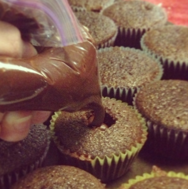 Similar to the first time, I used an apple corer to hollow the center. The only difference is that I filled it with the Irish Cream filling instead of a Jameson chocolate ganache, since I didn’t have any Jameson. The Irish Cream filling worked just as nicely. I used a little less sugar, which made the cake a little darker, and sweet butter cream provided the perfect amount of sweetness to dark Guinness cake.